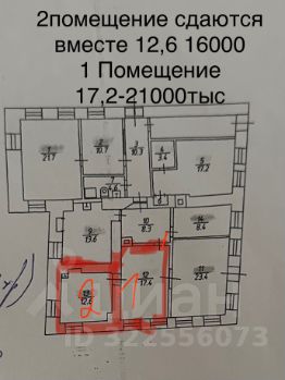 (цокольный этаж, часть помещения, общий вход на троих арендаторов).